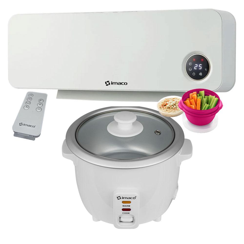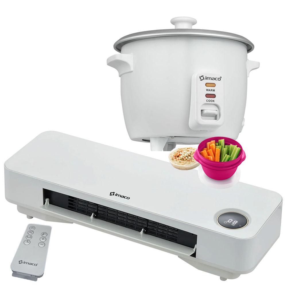 Haz de tu hogar un espacio más cálido y funcional con este combo Imaco. El calentador de pared WH2000 mantiene tus ambientes agradables durante los días fríos, mientras que la olla arrocera RC006 simplifica la preparación de tus comidas favoritas.