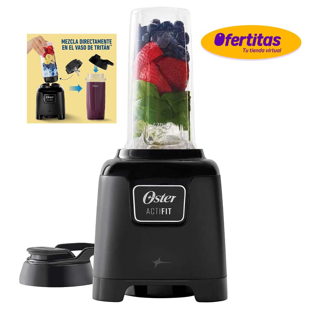 Licuadora Oster Personal con Sistema de nutrición ActiFit vaso portátil Tritan Con el sistema de nutrición Oster ActiFIT El diseño de la cuchilla disminuye el tamaño de las partículas de alimentos integrales ayudando a maximizar la absorción de los nutrientes. ¡VIVAMOS UNA VIDA SANA! Diseñada pensando en tu agitado estilo de vida, el sistema de nutrición Oster ActiFIT te brinda una nutrición inteligente, con opciones más frescas, saludables y nutritivas. Mezcla las bebidas directamente en el vaso, para que puedas llevarlas de manera conveniente a donde quiera que vayas. VASO DE TRITÁN Vaso de Tritán con tapa anti-derrames y 600 ml de capacidad, te brinda todos los beneficios de un vaso de vidrio en un material más resistente. Es libre de BPA, no retiene olores ni manchas. El bisfenol-A (BPA) es un producto comúnmente para fabricar plásticos de policarbonato. POTENTE MOTOR resistente y duradero de 450 watts ACOPLE METÁLICO 10 VECES MÁS FUERTE, Exclusivo sistema de acople metal contra metal All-Metal Drive para mayor durabilidad.