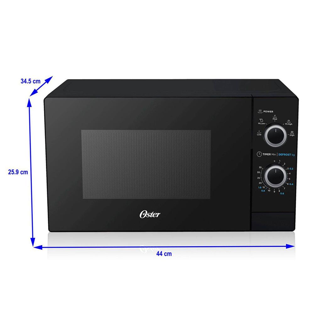 El horno microondas POGM3702 de la marca Oster renovará la apariencia de tu cocina, gracias a su sofisticada apariencia color negro. Los 20 lt de capacidad de este horno eléctrico simplificarán las labores en la cocina. Funciona con un voltaje de 220 V y una potencia de 700W. Su panel manual te permitirá controlar la temperatura para elegir los niveles que más te convengan, asimismo cuenta con la opción automática de descongelado para que no te preocupes más por cómo emplear los alimentos que conservas en la nevera.