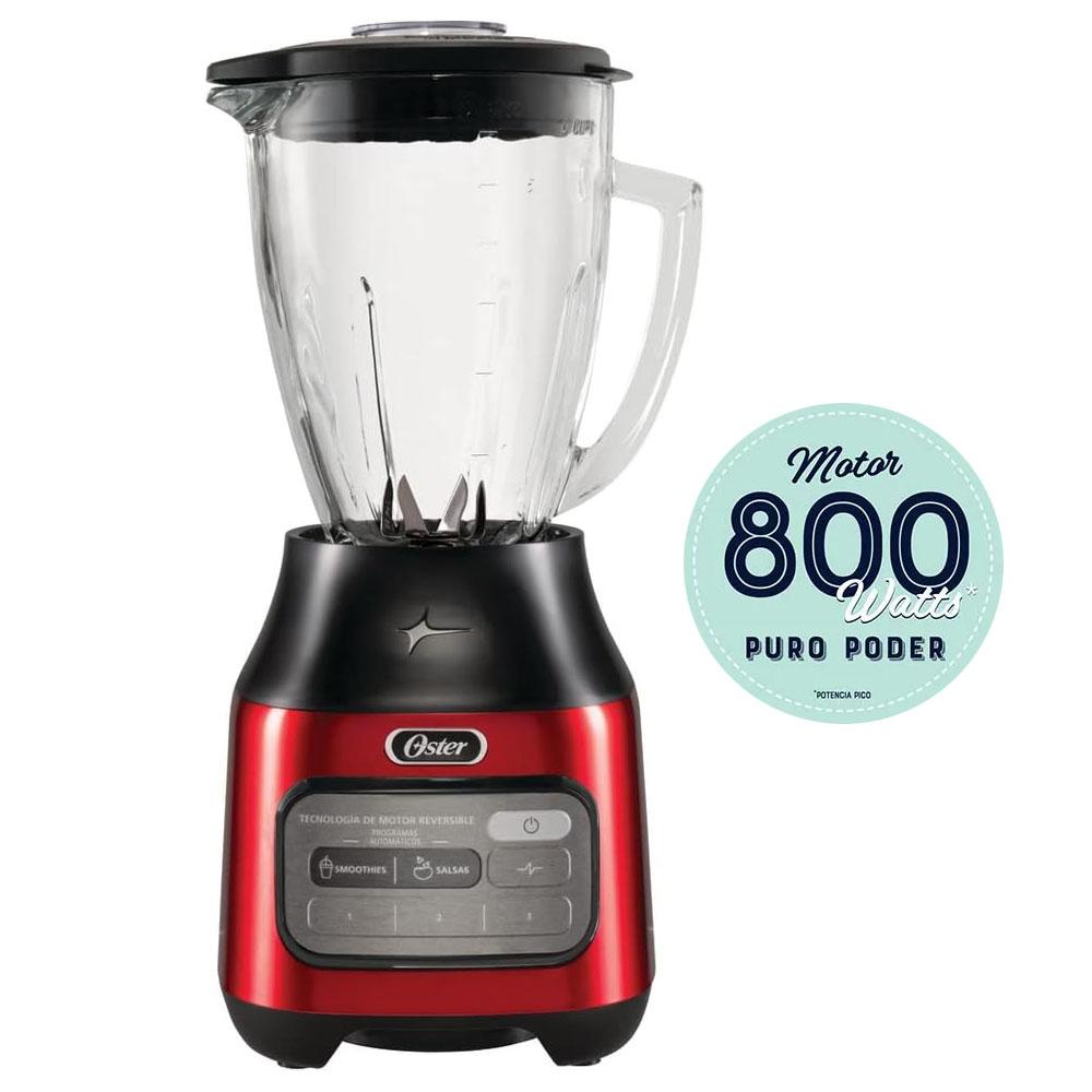 La Nueva Licuadoras Oster con tecnología reversible, 2 programas automáticos y 3 velocidades más pulso son un sistema de licuado que lo tiene todo y de color Rojo, Cuentan con un poderoso motor 4 veces más duradero con 800 W de potencia pico y durabilidad comprobada de hasta 10.000 licuados. Su vaso de vidrio refractario Boroclass es resistente a ingredientes hirviendo**. Además, tiene una revolucionaria cuchilla 100% de acero quirúrgico que pulveriza hielo y muele granos, no se oxida ni gotea. El acople 100% metálico es 10 veces más fuerte***, que resiste el desgaste generado por la fricción entre la base y la cuchilla, por lo que te brinda más durabilidad en tu licuadora y por lo que no tendrás ninguna dificultad procesando los ingredientes más duros. * Comparado con motor modelo PU5443127-6115-AL en pruebas de carga ** Hasa un choque térmico de 90°C *** Resistencia a la tracción de acero laminado en frío 1215 comparado con plástico PP